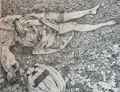 Pastel painting from a black-and-white photograph shot nearly 50 years ago near Tunkhannock, Pennsylvania, for an art class at Wilkes College with Mark Cohen. Small town. Rural America. Autumn setting. Perfect for Halloween!